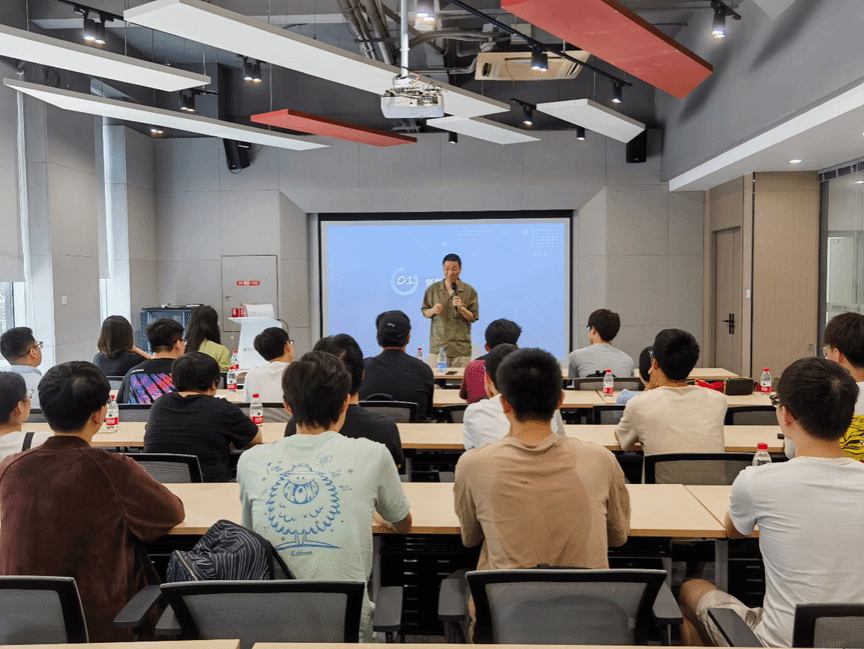随后,卢教授分享了他对科学计算和人工智能的理解。他认为,科学计算是继理论研究和实验之后的第三种科学研究方法,而软件则是科学计算的支柱。他希望此次实习能让同学们近距离感受科技创新成果,更好地了解国产科学计算软件的开发过程。他鼓励同学们积极拥抱人工智能,发挥年轻人的创造力,朝着自己感兴趣的方向努力学习,并强调热爱祖国、团结合作,为国家的科技发展作出贡献。