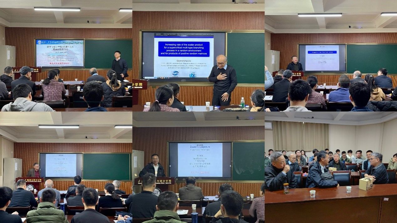 的十年求学往事,称这段宝贵时光对其学术生涯至关重要。他指出,余家荣先生牵头创办的中法数学班育人成果丰硕,在海内外影响深远。刘全升教授作了题为“Increasing rate of the scalar product for a supercritical multi-type branching process in a random environment and for products of positive random matrices”的学术报告,刘伟教授主持报告。