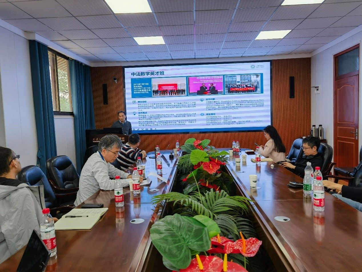 副院长缪爽教授对中科大数学科学学院师生来访表示欢迎与感谢,他指出学校对数学基础学科拔尖人才培养高度重视,从80年代设立中法数学试验班,到设立拔尖创新人才培养特区数学自强班,并精心筹办新时代中法数学班,将进一步推进拔尖创新人才培养工作。
