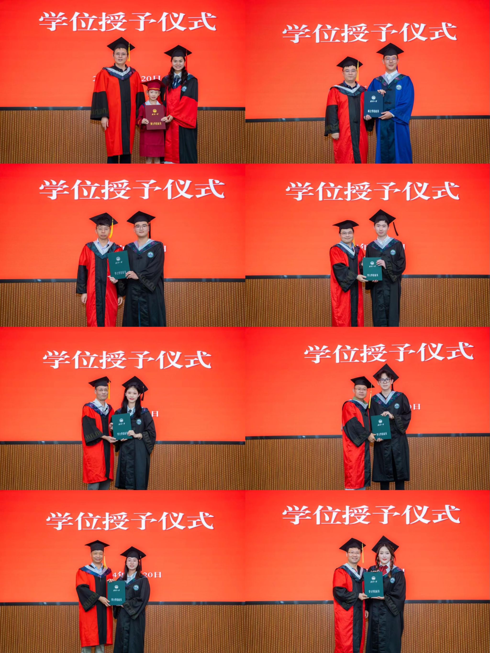 庄严的学位授予仪式随后拉开。来自不同系所的老师王茂发、刘伟、尹万科、戴书洋、胡亦钧、张继伟、冯慧、刘妍岩、廖灵敏先后为所有2024届毕业生逐一拨穗正冠、颁发学位证和毕业证并合影留念。