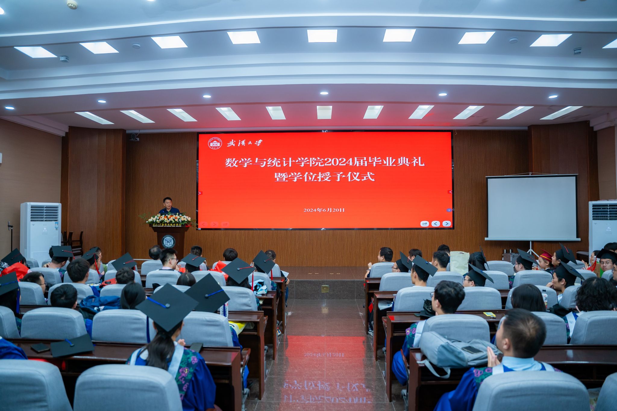 2024届毕业典礼暨学位授予仪式在数学会堂隆重举行。学院在校的党政领导班子成员、各系负责人、教师代表、班级导师代表出席,2024届全体本科毕业生、毕业研究生参加,仪式由院党委副书记汪思明主持。