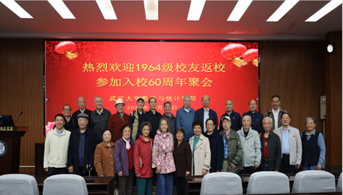 校友们或满头白发,或步履缓慢,但精神矍铄。“热烈欢迎1964级校友参加入校60周年聚会”的大幅欢迎标语,让回“珈”的老校友们倍感亲切。激扬人心的宣传片介绍学院的发展成就,更让校友们欢欣鼓舞。院党委副书记汪思明等热情地接待来访的老校友,并与他们亲切交谈。