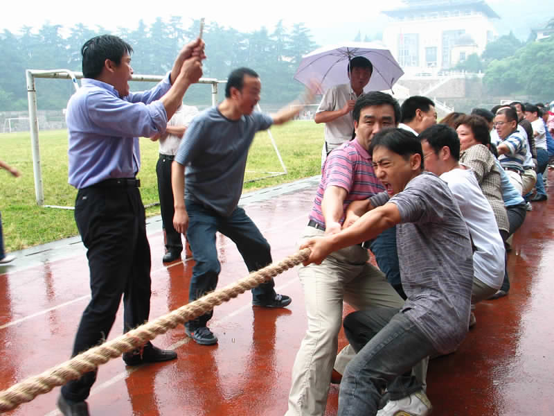 教学科研任务较重的单位,为积极迎战本次拔河比赛,全院上下付出了巨大的努力:总教练罗云峰老师为每场比赛制定策略,并亲自通知每位队员准时到位;拔河队员克服工作、生活中的困难,坚持训练,以最佳状态投入到比赛中;学院多名老师下课后来不及休息即奔赴现场加油;学院行政与学院工会委员会提供了强大的后勤保障;院党委书记尹常倬与院长陈化也在百忙之中亲临现场与啦啦队一同为队员们呐喊助威。正是在这种强大的合力下,即使面对身体素质与年龄优于自身的对手,杏吧