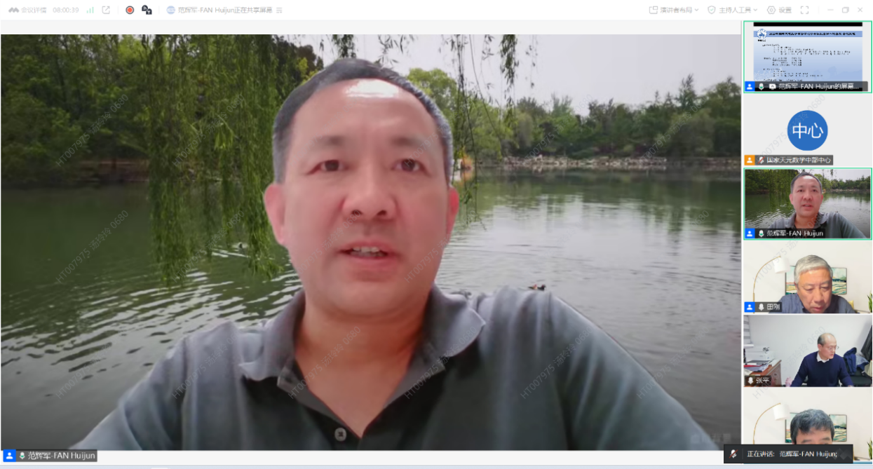 中心执行委员会主任、武汉大学数学与统计学院院长范辉军教授作中心工作汇报。他详细介绍了中部中心的筹建过程,从2015年开�筹备,到2019年项目获批、中心挂牌成立,再到如今,中心不�发展壮大,覆盖范围从六省扩展到七省,共建单位也增加到27家。阐述了中心的组织架构、研究方向、经费支持情况,并介绍了未来计划开展的一系列活动,包括举办中部地区数学年年会、建设高端课程、资助共建单位学术活动、举办博士生论坛、建设中部高校数学教师暑期学校�建立恩施基地等�