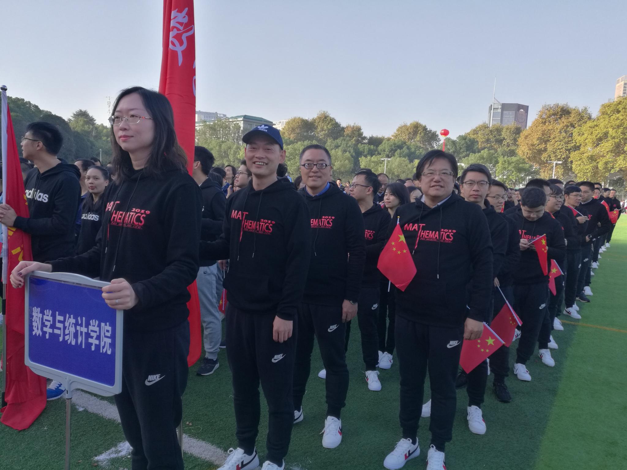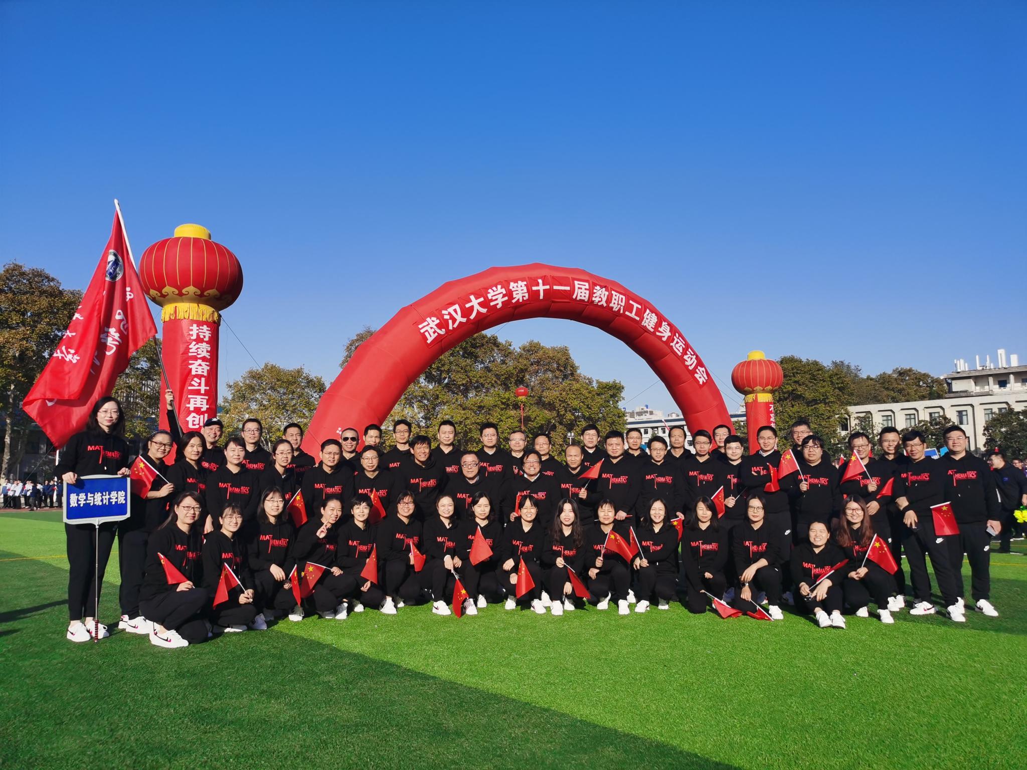 2019�11�15日,武汉大学第十一届教职工健身运动会在桂园操场隆重举行�“唯我数院,百科之先,纵横古今,包罗万千!”伴随着嘹亮的口号,�55名数院教职工组成的运动员方阵在院长赵会江,副院长吴蜀江、院党委副书黄安云的带领下迈着整齐的步伐,意气风发地走过主席台,为激动人心的运动会拉开了序幕�