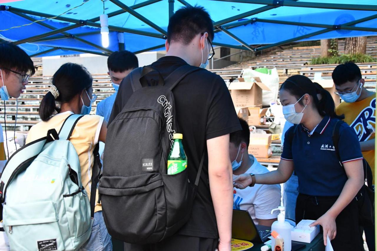 学院党委书记张明智、院长赵会江及学工组的老师们在学院迎新点为新生及其家长答疑解惑。从校园生活到教学情况,老师们知无不言言无不尽,为初到珞珈、尚有些迷茫的新生指明了一条道路。