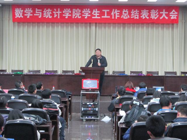 12月19日晚,2011年度院学生工作总结表彰大会暨考风考纪动员大会在数学会堂召开,出席大会的院领导和老师有院长陈化、院党委书记张明智、院党委副书记吴蜀江、副院长赵会江、陈文艺、胡亦钧、基础数学系主任涂振汉、应用数学系主任羿旭明、学工办主任黄安云、辅导员胡法拉等。