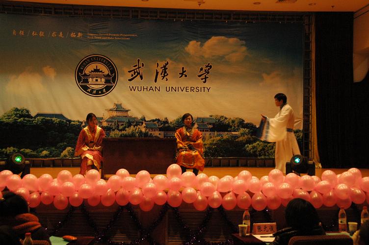 2011级研究生王梦龙、程秋维、李龙玢、王毅瑜、赵霞、杜巍同学参演的话剧《神马是爱情》在一片热烈的掌声中登场。开场时幽默的对白立刻吸引了台下的观众,随着剧情的深入,整个赛场沉浸在梁山伯与祝英台的凄美爱情中。在亲友团的热烈掌声和喝彩声中,赛场气氛达到高潮。最终以92.8的高分荣获此次大赛一等奖。