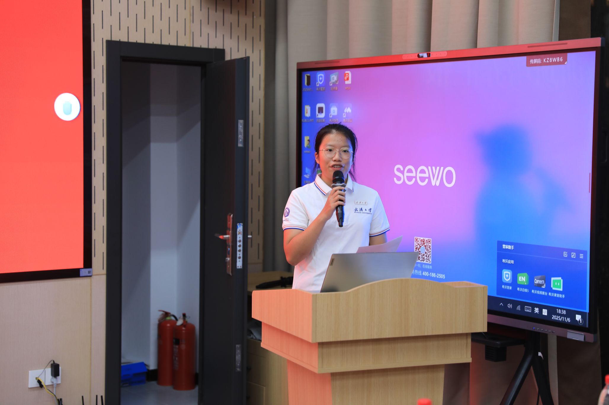 会议第三项,院“青马工程”第三期培训班班长洪榕芳作培养汇报。洪榕芳回顾了三期青马班学员参与理论研讨、开展主题宣讲、探索学科前沿的成长环节。依托于“科技强国的数学根基”课程体系,学员三期“青马班”学员们在学科与学科、学科与思政、学科与实践的结合中寻找到了个人成人成才的路径,树立了用数学力量助力科技强国的决心与担当�
