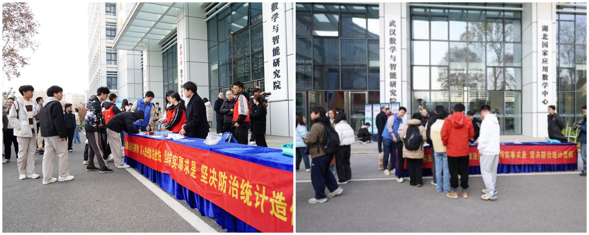 12月7日,由国家统计局湖北调查总队、湖北省统计局主办,国家统计局武汉调查队、武汉市统计局、武汉大学数学与统计学院联合承办,武昌区统计局协办的“12・4”国家宪法日暨“12・8”统计法颁布纪念日法治宣传活动于武汉大学雷军科技楼成功举办。我院作为重要承办单位参与其中,用专业知识和青春热情为统计法治宣传贡献了数统力量。