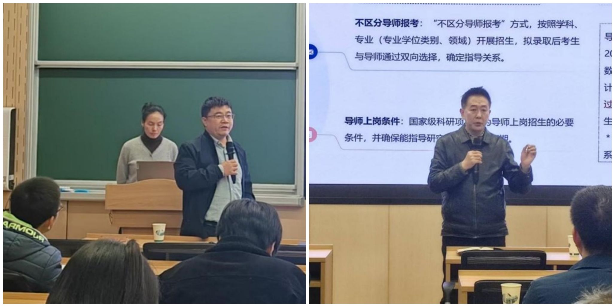 随后,研究生教学秘书龚景系统介绍了研究生招生政策、指标安排与流程规范;刘雅雯则说明了培养的流程环节与加强学位论文质量管理的措施。