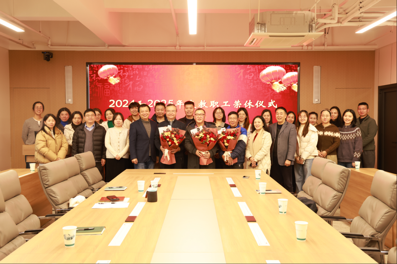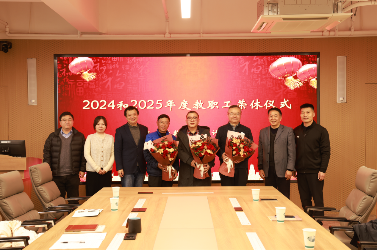 为2024和2025年退休的教职工举行了简朴而温馨的荣休仪式。2024年退休的王孝礼、洪志明和2025年退休的金勇等三位老师,院党委书记李勤、副书记刘珊珊、副院长陈春荣和刘伟,学院办公室老师、学生代等参加。院党委副书记汪思明主持荣休仪式。