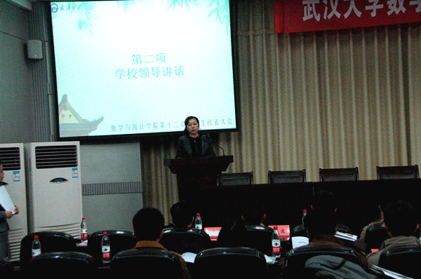 研究生会所做的工作,尤其对学院的“湖北省高校数学讲课比赛”、“杏坛杯”讲课比赛等品牌活动表示了高度赞扬。同时,她还传达了校党委书记李健教授讲话的重要精神,并希望第十二届研究生会能够解放思想,改革创新,取得更加优异的成绩。