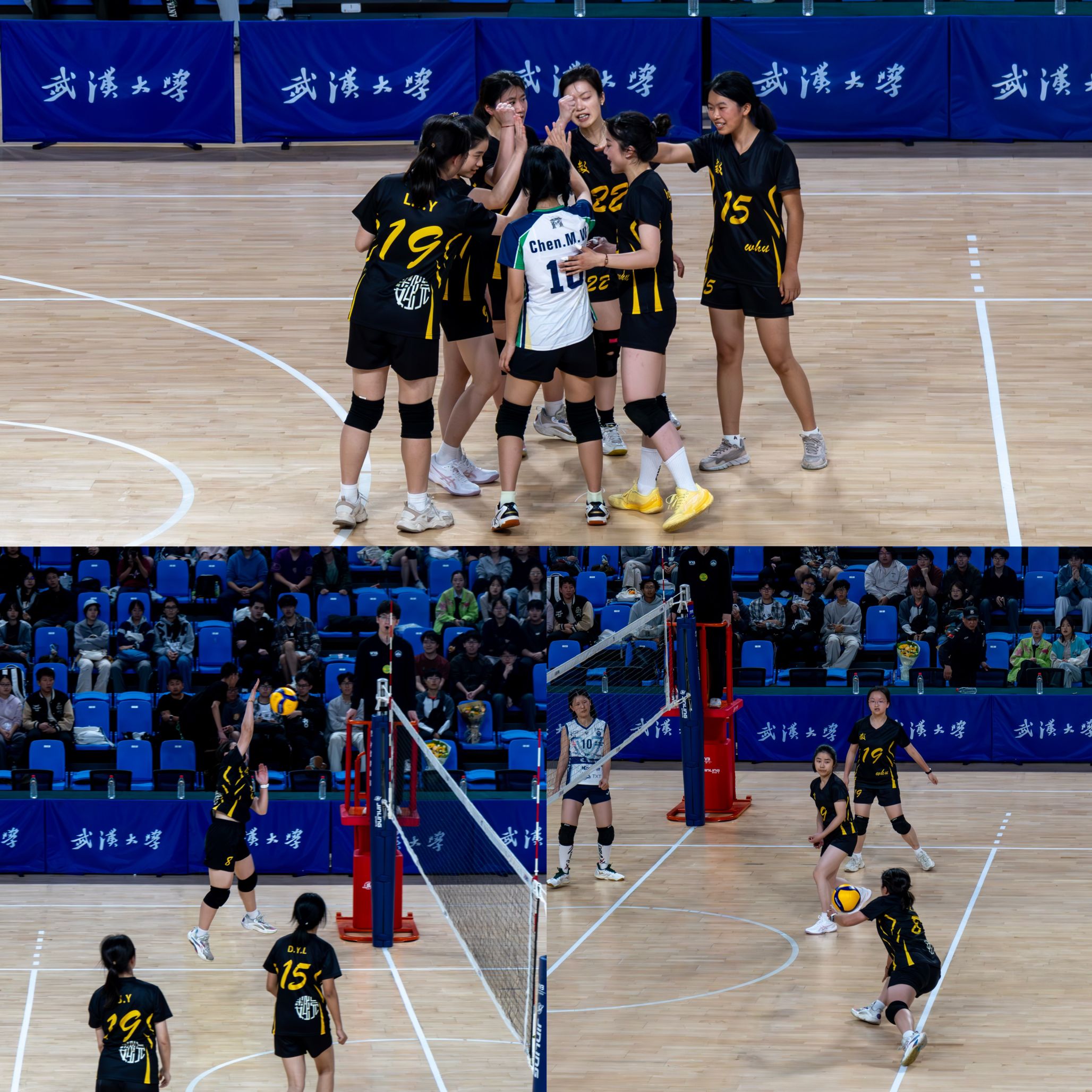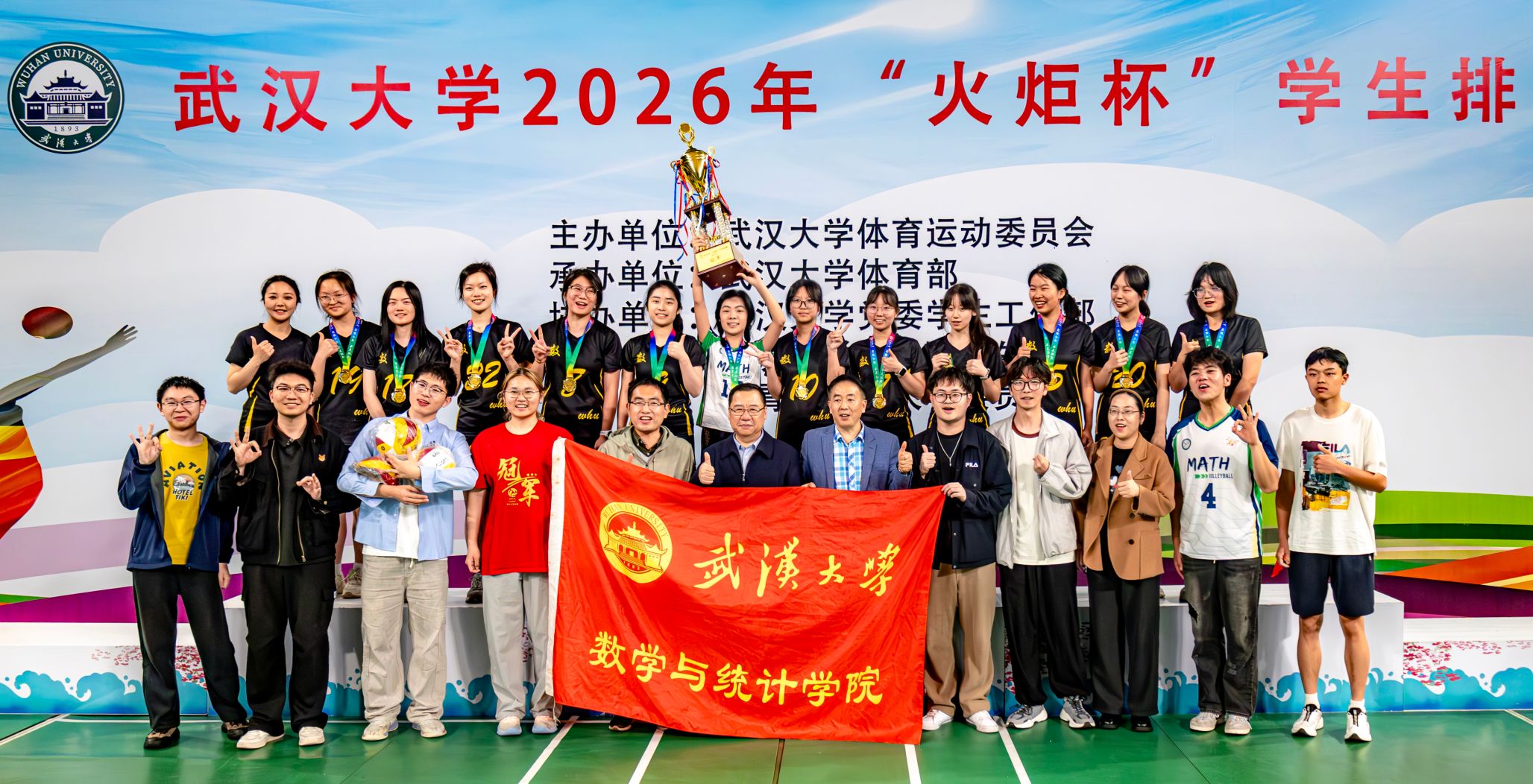 女排以全胜战绩实现三连冠;女排队员黄晶获评“最佳主攻”称号,张子涵获评“最有价值球员”称号。校党委书记朱孔军来到现场助阵,并在赛后为获奖球队颁奖。院党委副书记汪思明,本科生院教务处副处长(挂职)、基础数学系教授徐旭,本科生辅导员到场为队员们加油助威。