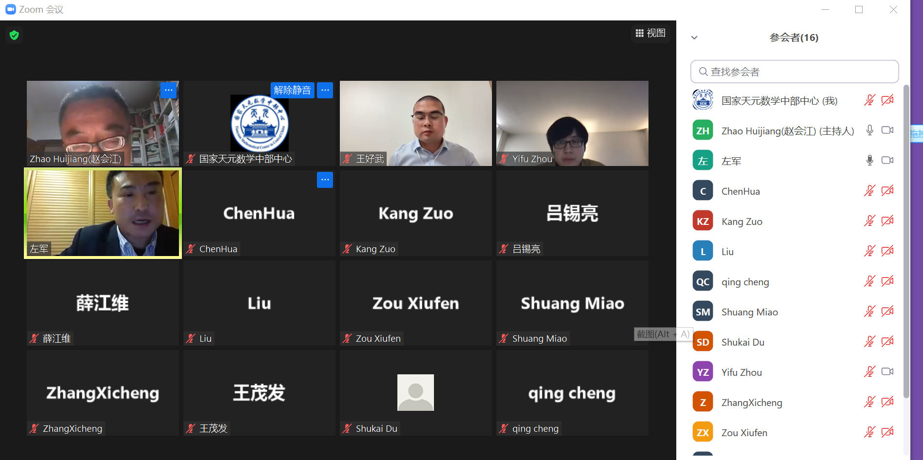 第九届国际交叉学科云论坛数学分论坛活动。五位海外青年学者,院党委书记左军、院长赵会江等院领导,杏吧