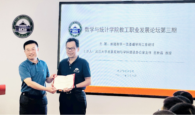 ,主讲第三期教工职业发展论坛,指导创建数学一流基础学科工作。