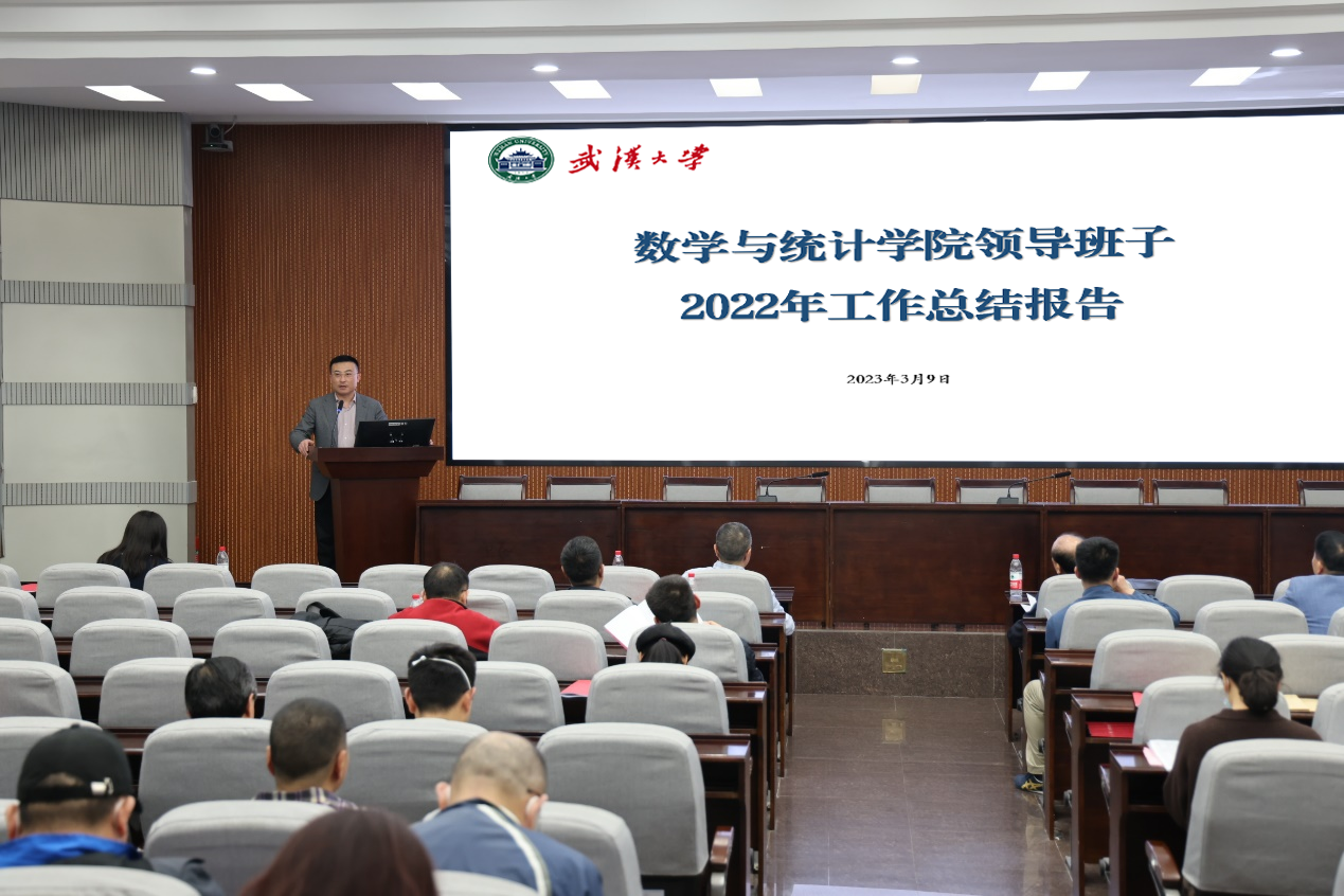 左军代表院党政领导班子,作年度总结和党建工作的述职报告。2022年,院党政班子团结依靠师生,拼搏奋斗进取,提质增效主要体现在五个方面:党建工作与办学业务有机融合促进发展;学科建设、师资引育和科研工作成绩喜人;本科教育、研究生培养和国际交流成果涌现;守正创新服务师生,加强治理优化氛围;“三全育人”工作成效为我校增光添彩。他指出,今年不仅是我校数学学科创建130周年的总结年,也是实施一流数学基础学科建设方案的开局年。杏吧