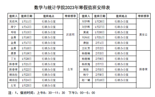 四、行政值班安排