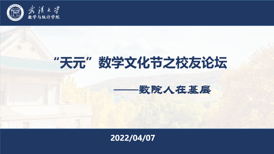 第十八届“天元”数学文化节之校友论坛如期举行。2022年04月07日16:30—18:30,校友论坛第一期——“数院人在基层”线上举行,论坛由刘傲然主持,两位特邀校友汪鹏飞和贺怡铭为同学们带来选调生政策解读和经验分享。