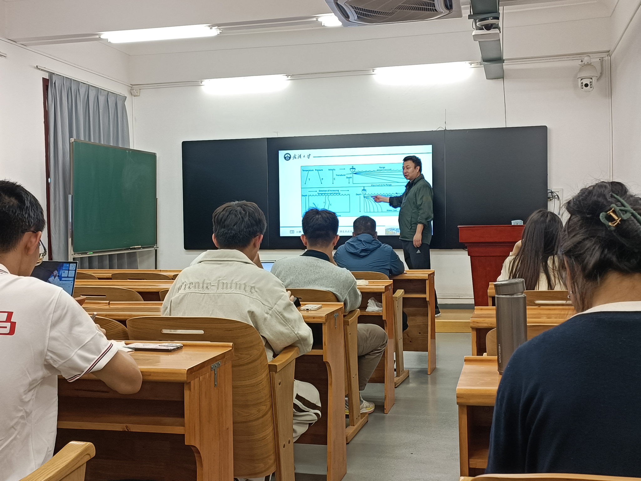 卫星导航中心江鹏教授应邀为同学们讲述“水下声学通信技术”课程。院团委书记刘宇晖主持本次课程。