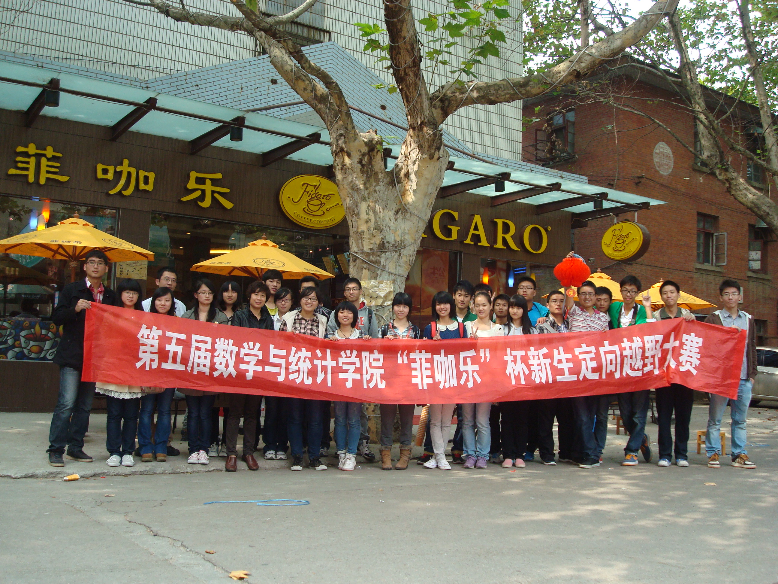 学生会项目部举办的第五届”菲咖乐”杯新生定向越野比赛在菲咖乐店举行,最后XXX队以60分钟的好成绩夺得第一名,每一个人都获得了由“菲咖乐”提供的120元体验券。王钰鹤队,蔡逸队分别名列第二和第三。