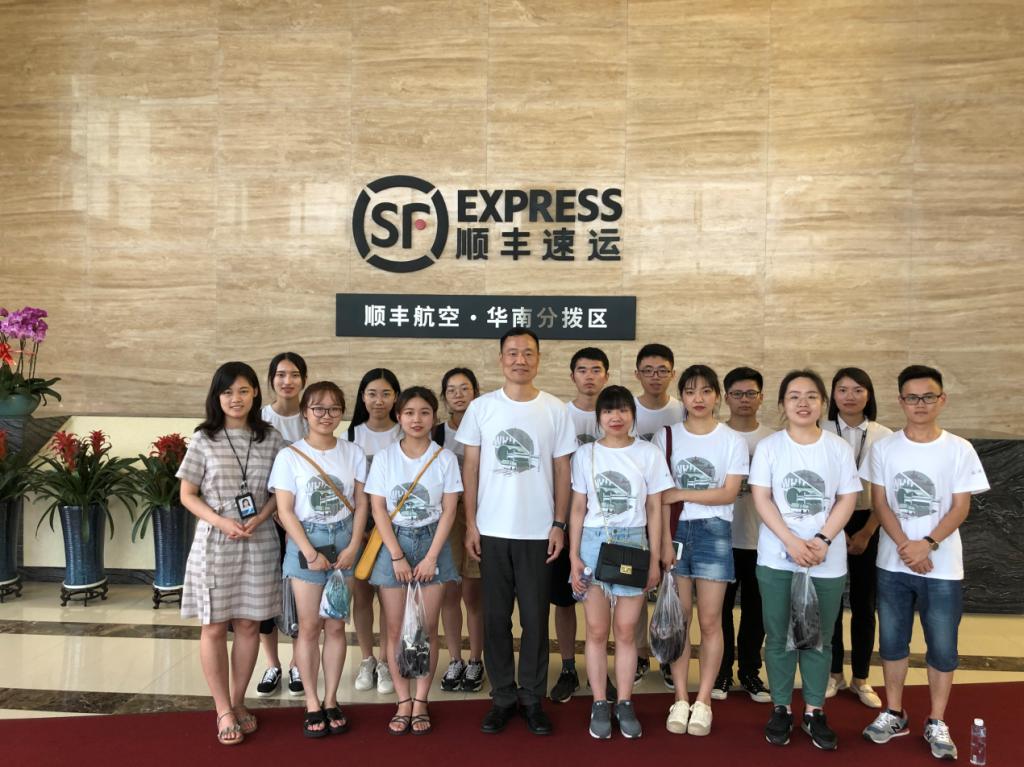 下午3点半交流会结束后同学们和姚师兄进行了合影。接着由郑经理带领我们去参观顺丰华南航空枢纽,郑经理委托航空枢纽的林女士给我们作参观介绍。首先我们到控制中心办公室,林女士首先介绍目前顺丰有55架飞机,分布全国各个关键枢纽,以保证货物能快速地到达目的地,接着给我们介绍了办公室各个岗位的职责,每个岗位都很关键,这关乎整个航运的安全。由于自动化分拣中心比较嘈杂,林女士暖心地准备了无线蓝牙耳机,让我们能更清楚地听到解说。接着带领我们去分拣中心,在参观的过程中,让我们感受到了科技的力量,每个包裹都能准确地分类到其目的地。在高科技的作用下,解放了人力,大力提高了效率。下午5点半参观结束,大家进行了合影,并十分感谢林女士的热情解说。