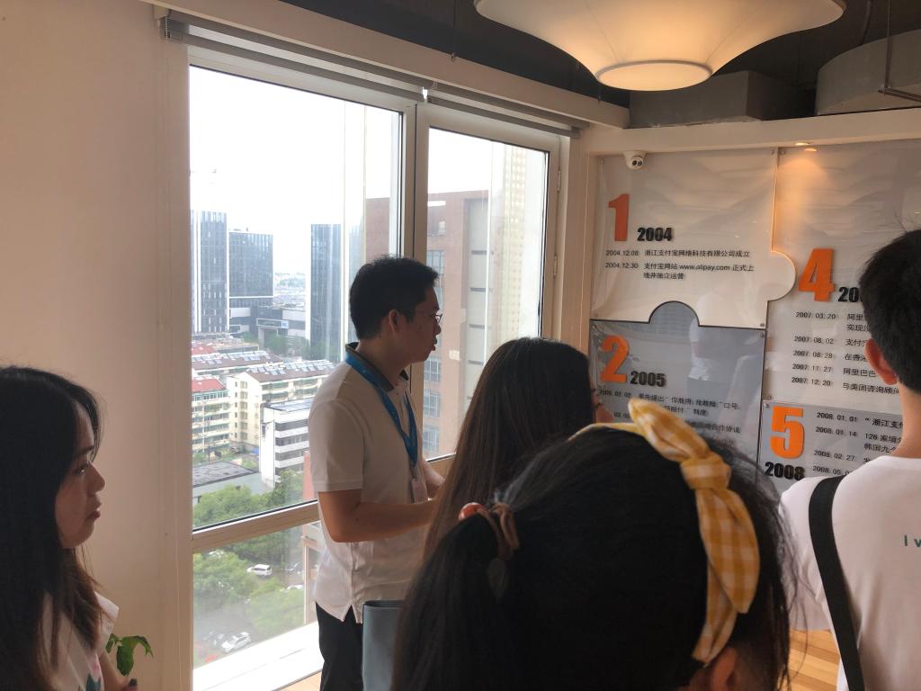 2019年7月1日上午,我们一行10人在院研究生辅导员燕老师的带领下,来到了杭州蚂蚁金服公司进行企业走访。