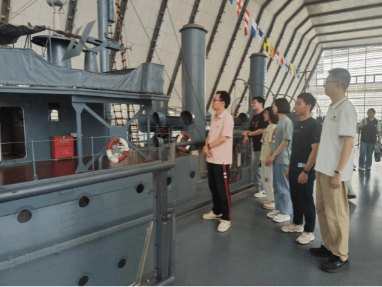 在中山舰博物馆,大家先后参观了“中山舰舰体陈列”“一代名舰——中山舰史迹陈列”和“中山舰出水文物精品展”。保留了部分弹孔的中山舰舰体、珍贵的出水实物,为我们提供了宝贵的历史见证,激荡起振奋人心的精神力量。