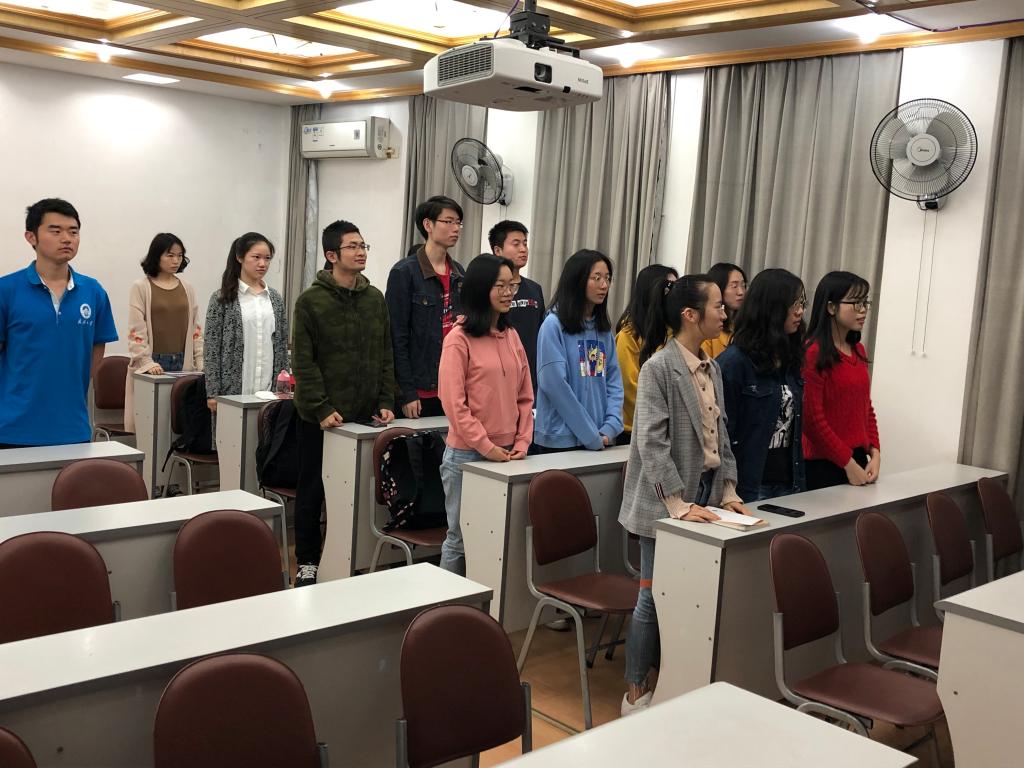 2018级应用统计硕士团支部根据《中国共产主义青年团章程》《中国共产主义青年团基层组织“三会两制一课”实施细则(试行)》有关要求,于2019年5月4日在数院205组织开展了以“青春心向党·建功新时代”为主题的团日活动。