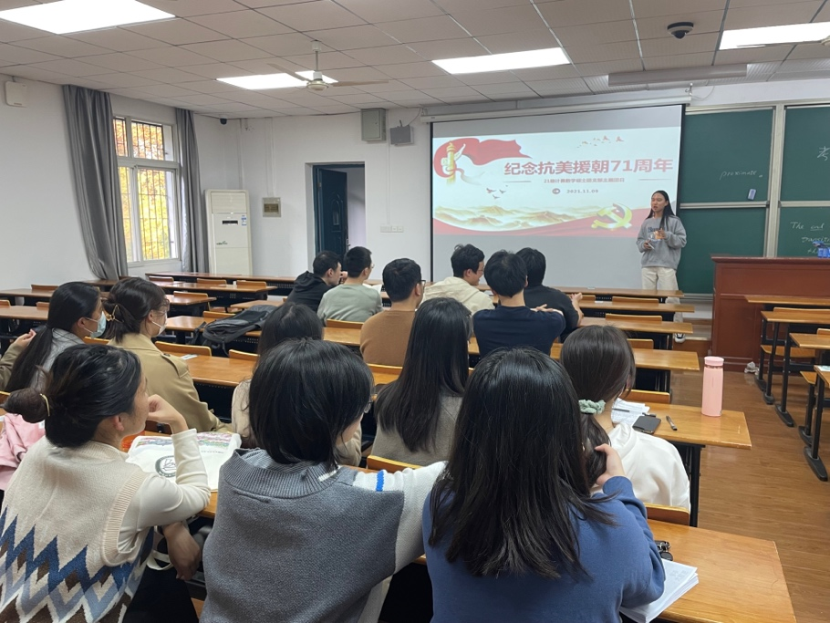 为庆祝中国共产党成立100周年,讴歌党的百年奋斗历程,引导广大团员青年学史明理、学史增信、学史崇德、学史力行,厚植爱党、爱国、爱社会主义的情感,让红色基因、革命薪火代代相传,11�16日下午,2021级计算数学硕士班团支部于�1303教室顺利开展“纪念中国人民志愿军抗美援朝71周年”主题团日活动�