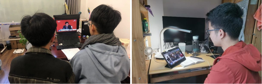 2021级应用数学硕士班团支部集体观看了解读党的十九届六中全会精神的直播。受疫情影响,本次活动团支部以各个寝室为单位划分,并在同一时间观看了中共中央举行的新闻发布会。