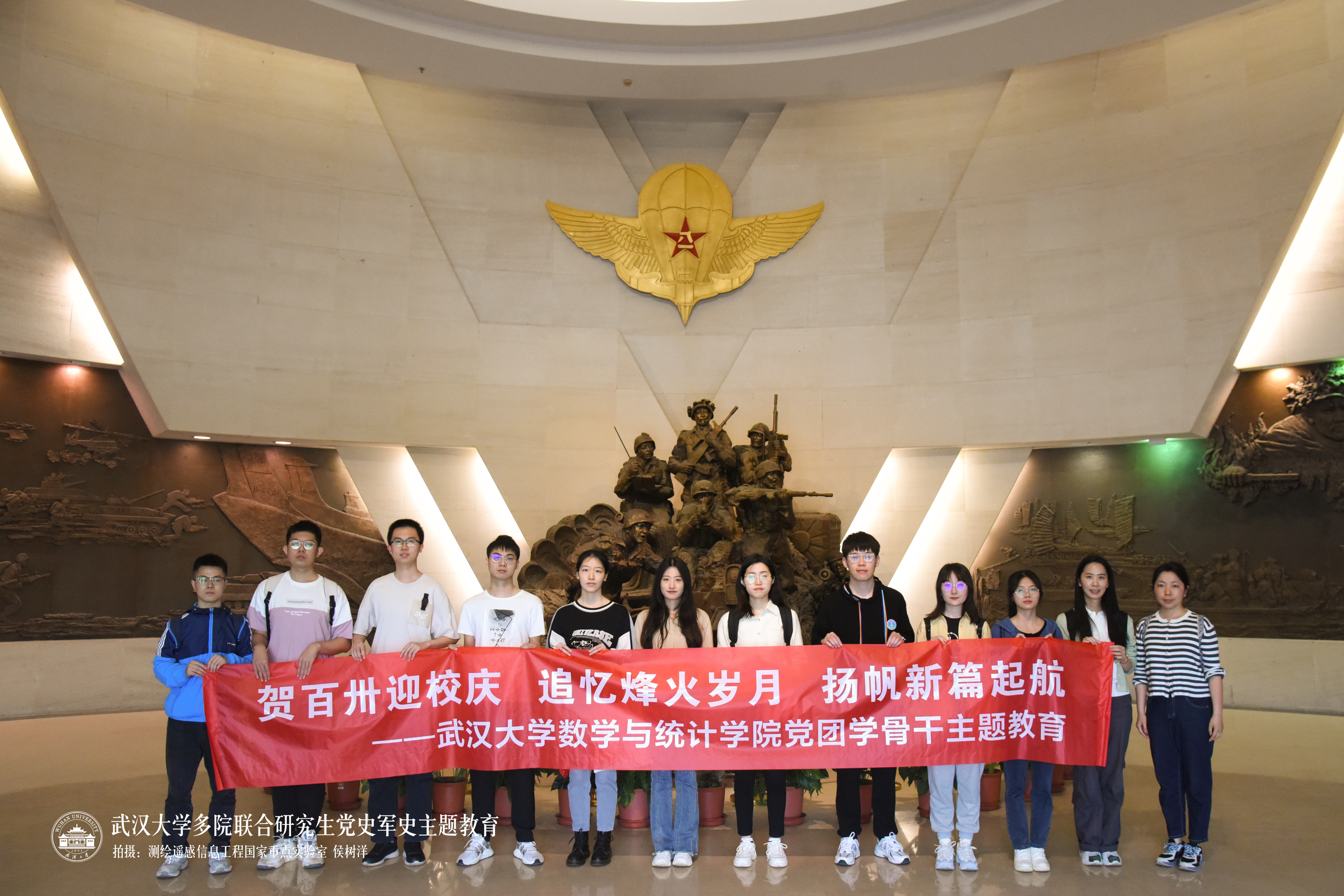 4�16日上午,为深入学习贯彻习近平新时代中国特色社会主义思想和党的二十大精神,推动思想政治教育走深走实,以饱满精神喜迎武汉大学和武汉大学数学学科成�130周年,我院组织研究生党团学骨干,与新闻与传播学院、法学院、口腔医学院、中国边界与海洋研究陀国际问题研究生、测绘遥感信息工程国家重点实验室联合组队,赴全国爱国主义教育示范基地-孝感市空降兵军史馆开展“赓续军队红色血� 激扬青春奋进力量”主题参观学习�
