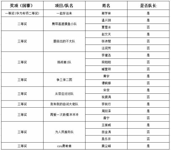 共有10支队伍获奖,其中一等奖1项,该项目并获华为专项二等奖;二等奖1项;三等奖8项。总计获奖人数20人。
