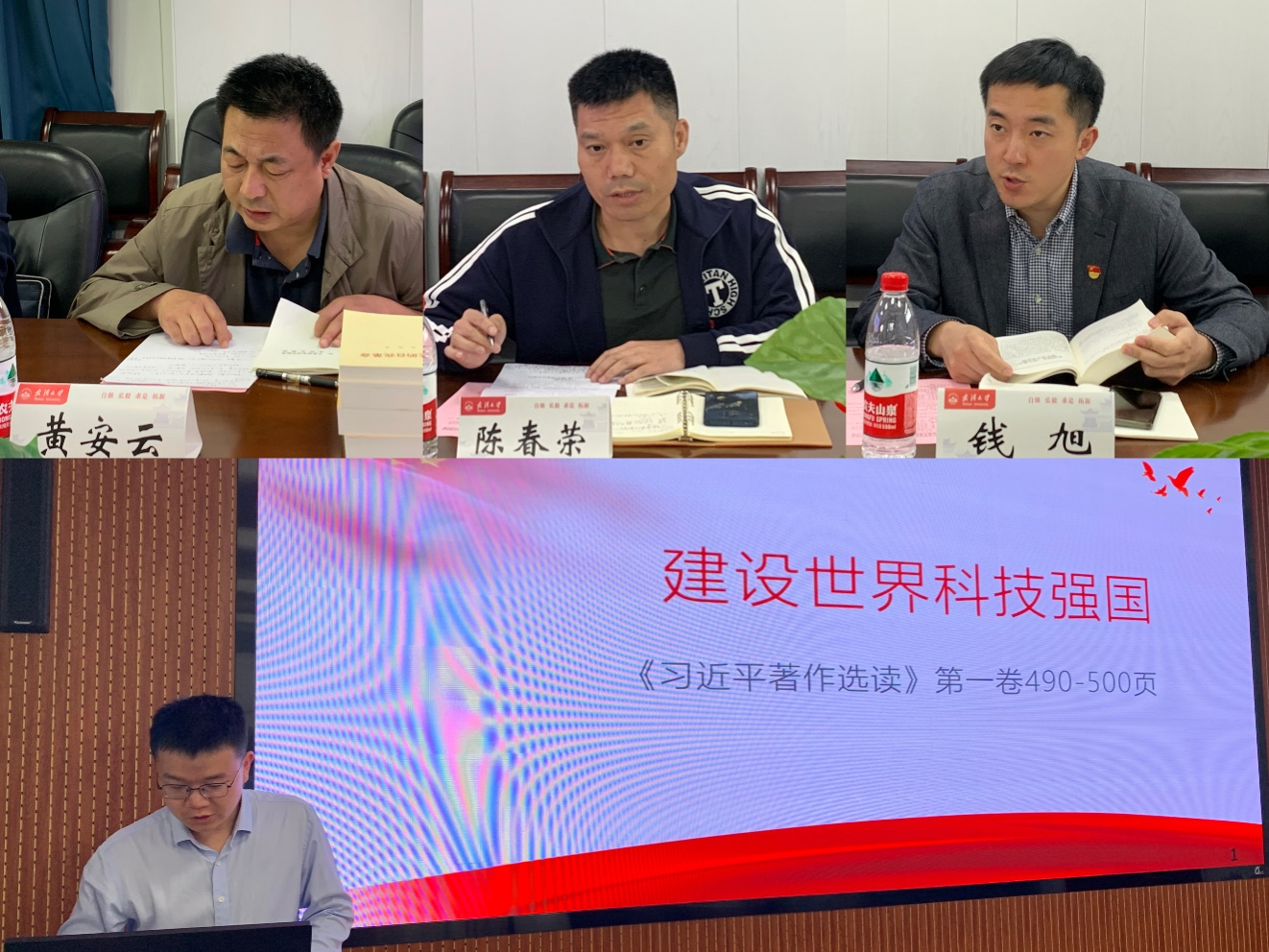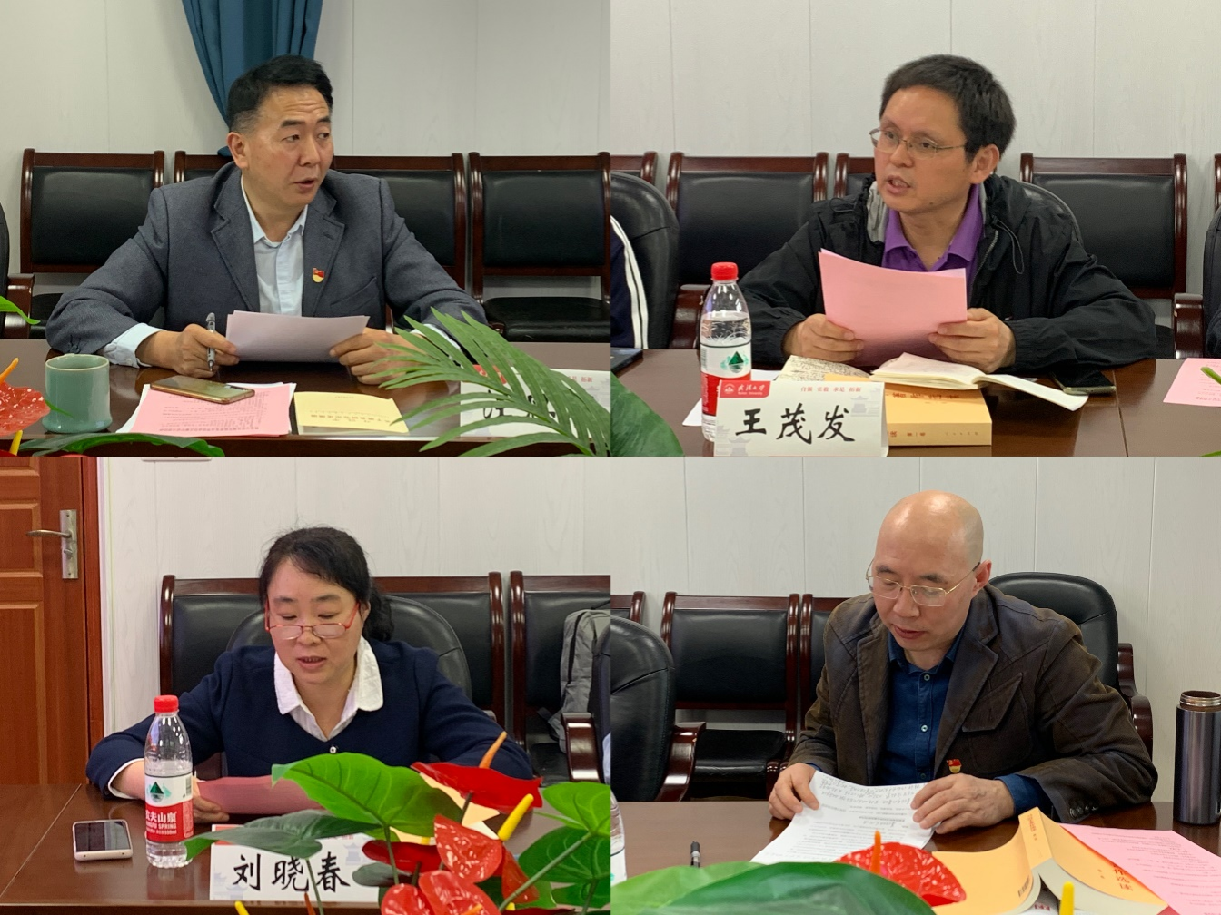 院党委副书记汪思明,院党委委员、副院长王茂发,院党委委员、基础数学系党支部书记刘晓春,概率与统计科学系党支部书记让光林围绕学习内容,结合本职岗位工作,先后交流了学习体会。