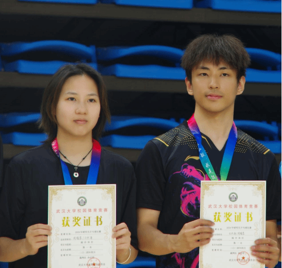 4�20日至21日,武汉大学2024年研究生乒乓球比赛在卓尔体育馆顺利举办。本次研究生乒乓球比赛的共有32个院系�272人次参与,我�10名同学参加了本届研乒赛混合团体、男双、混双三个项目的比赛。在运动员们的不懈奋斗下,我院继武汉大学2023年学生乒乓球比赛后,再次取得混合团体季军的傲人战绩!在单项赛事中�白书�/周燏�组合问鼎混合双打冠军�周睿�/郝泽�组合荣获男子双打亚军�