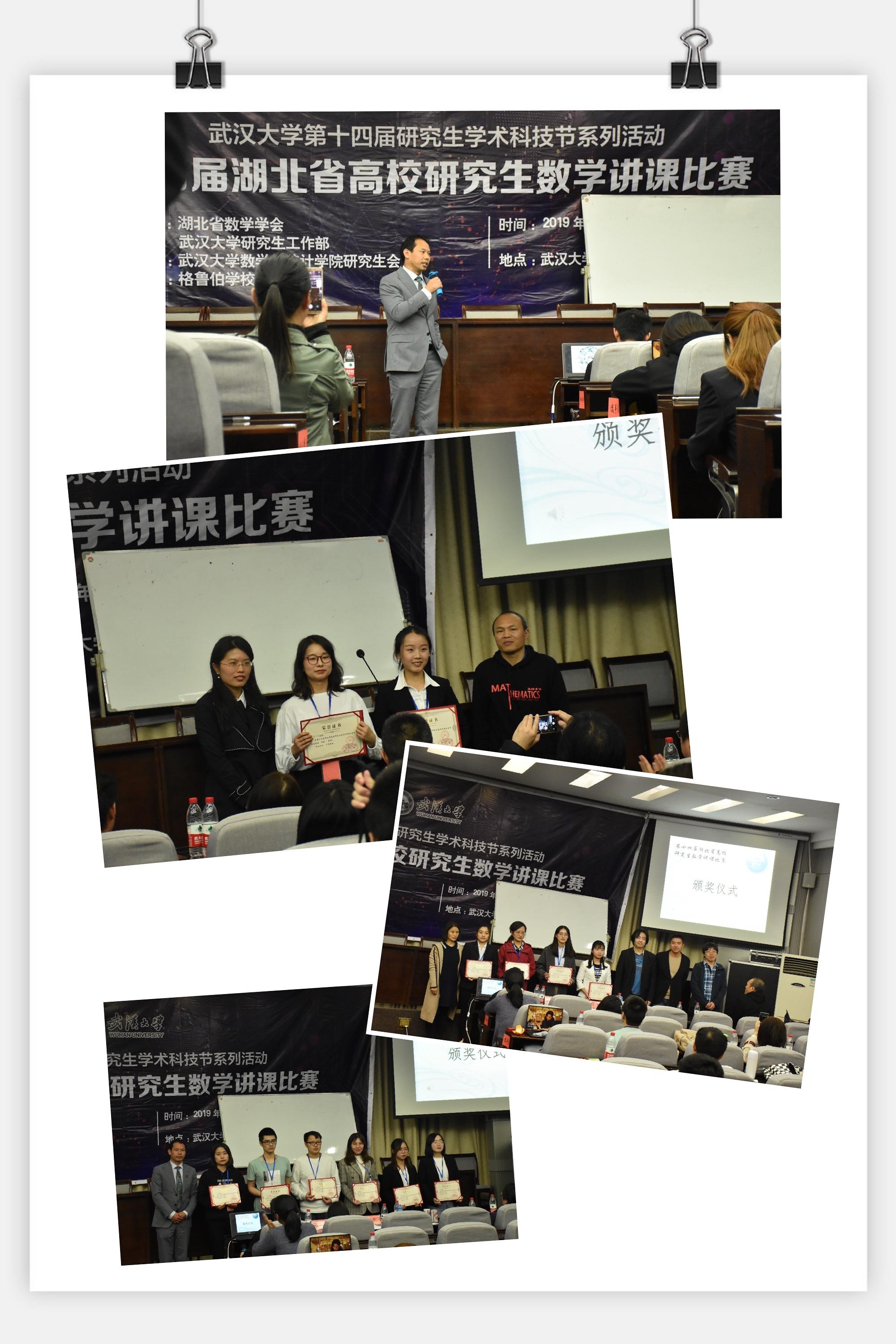为加强我省研究生讲课的技能、提高我省研究生运用所学知识开展教育教学的能力,以及为未来可能走向教师工作岗位的同学提供一个良好的平台,2019年11月15日晚6点30分,第十四届湖北省高校研究生数学讲课比赛在杏吧