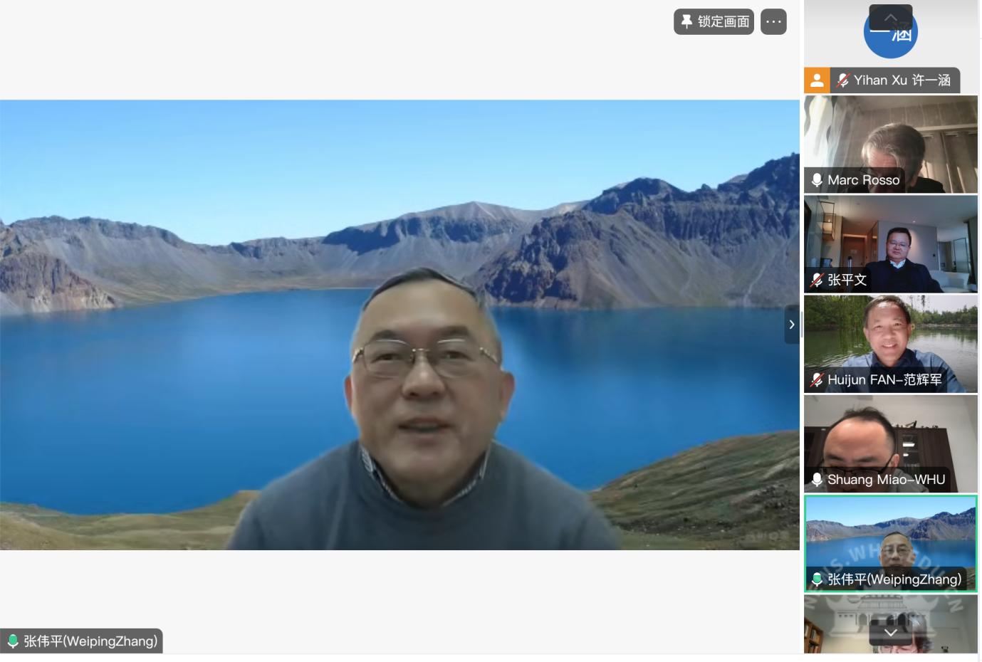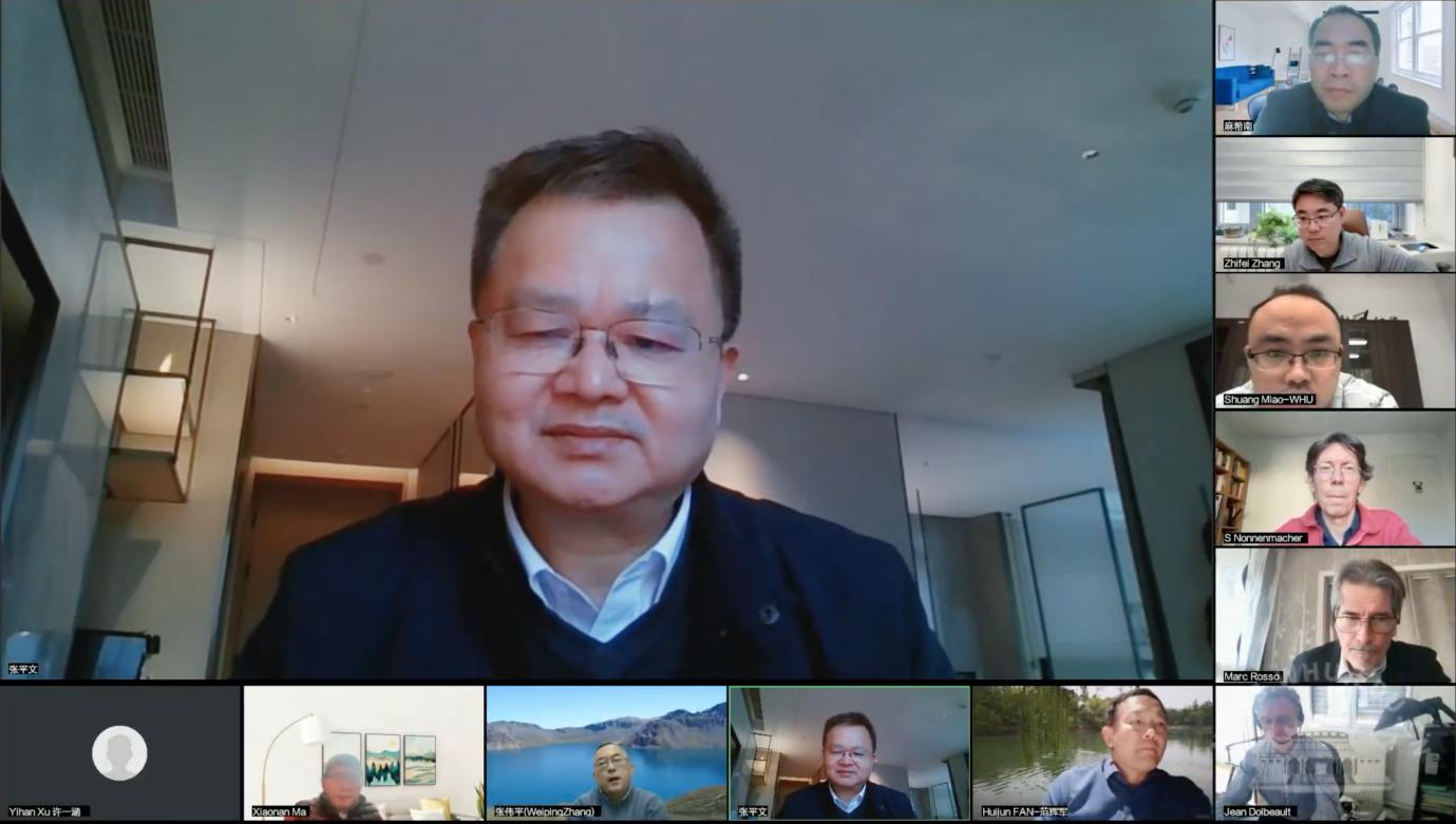 On February 3, the Bilateral Academic Committee Meeting of the Sino-French Research Center for Mathematics at Wuhan University was successfully held. Attendees included Academician Zhang Pingwen, President of Wuhan University; Academician Zhang Weiping from Nankai University; Professor Marc Rosso from Université Paris Cité; Professor Patrice Le Calvez from Sorbonne University; Professor Stephane Nonnenmacher from Université Paris-Saclay; Professor Jean Dolbeault from Université Paris-Dauphine; Academician Shen Weixiao from Fudan University; Professor Liu Jianya, Vice President of Shandong University; Professor Zhang Zhifei from Peking University; Professor Ma Xinan from the University of Science and Technology of China; and Professor Ma Xiaonan from Nankai University, among other distinguished scholars. The meeting was held online and chaired by Professor Zhang Weiping.